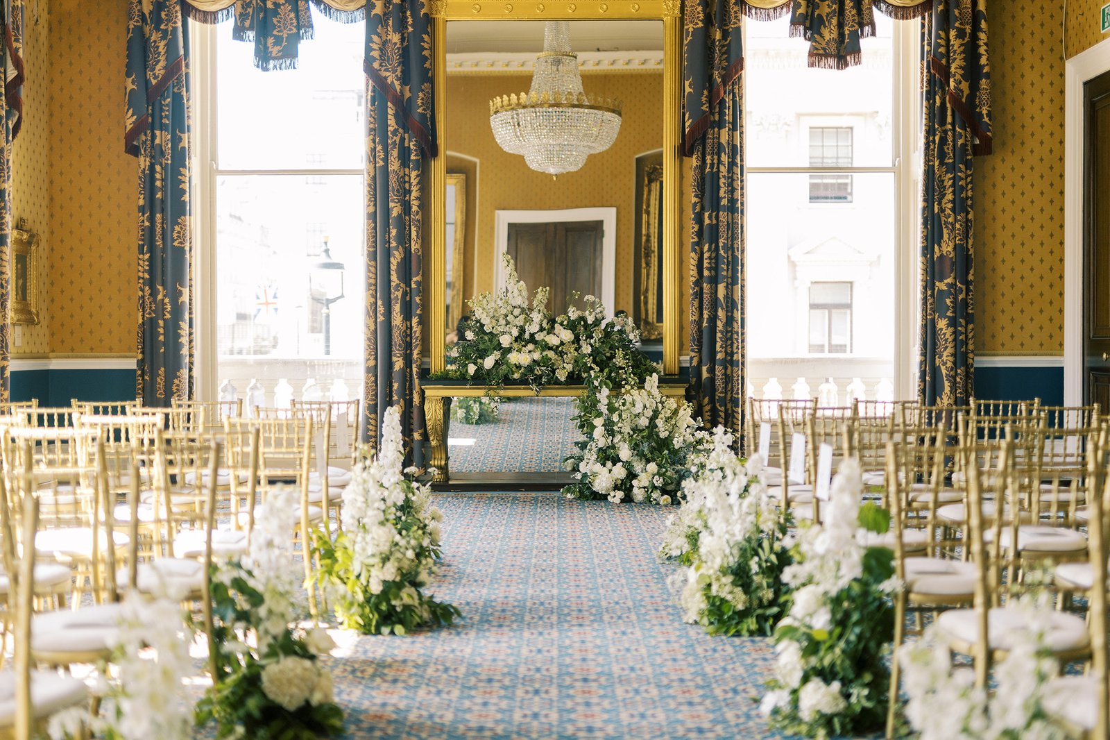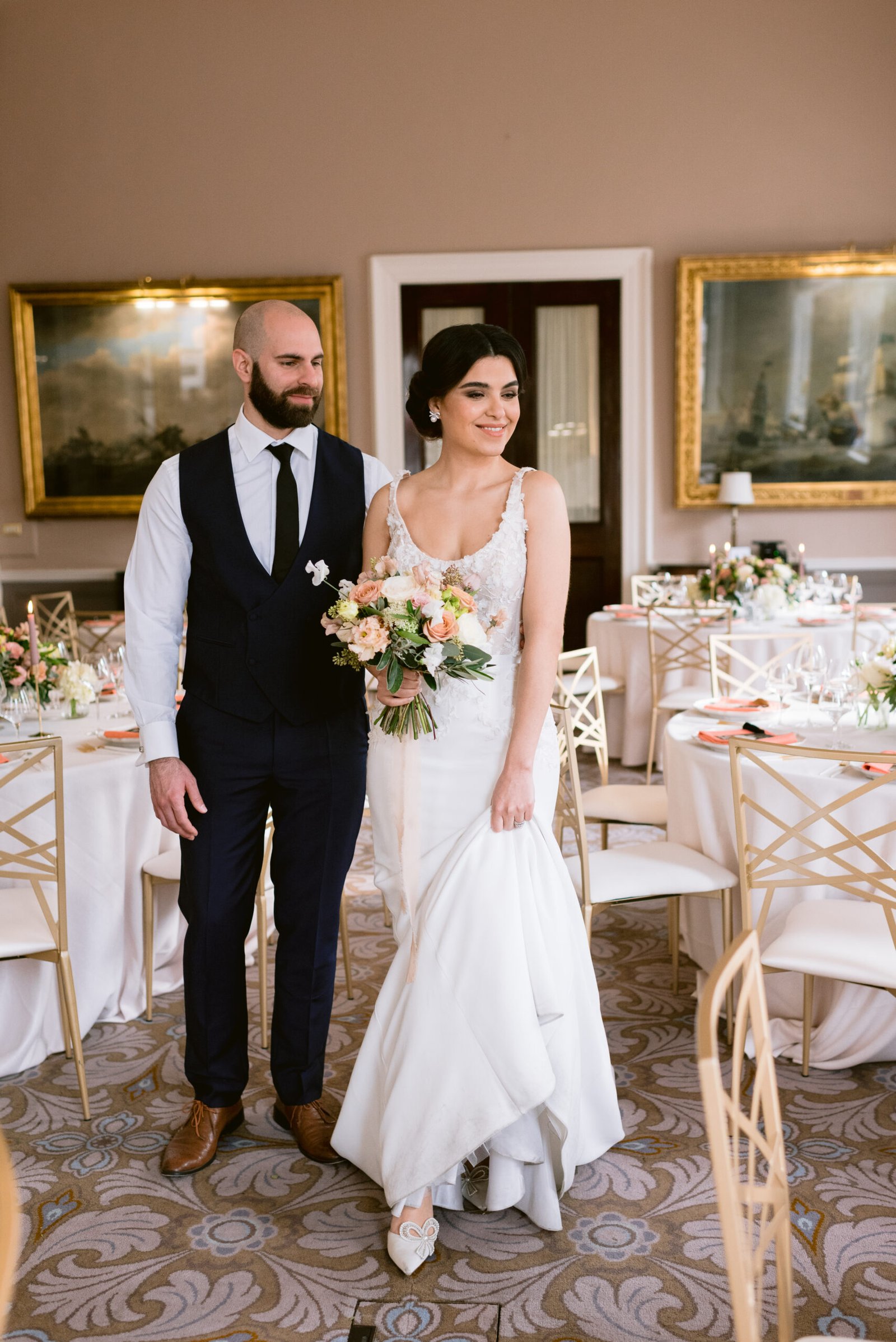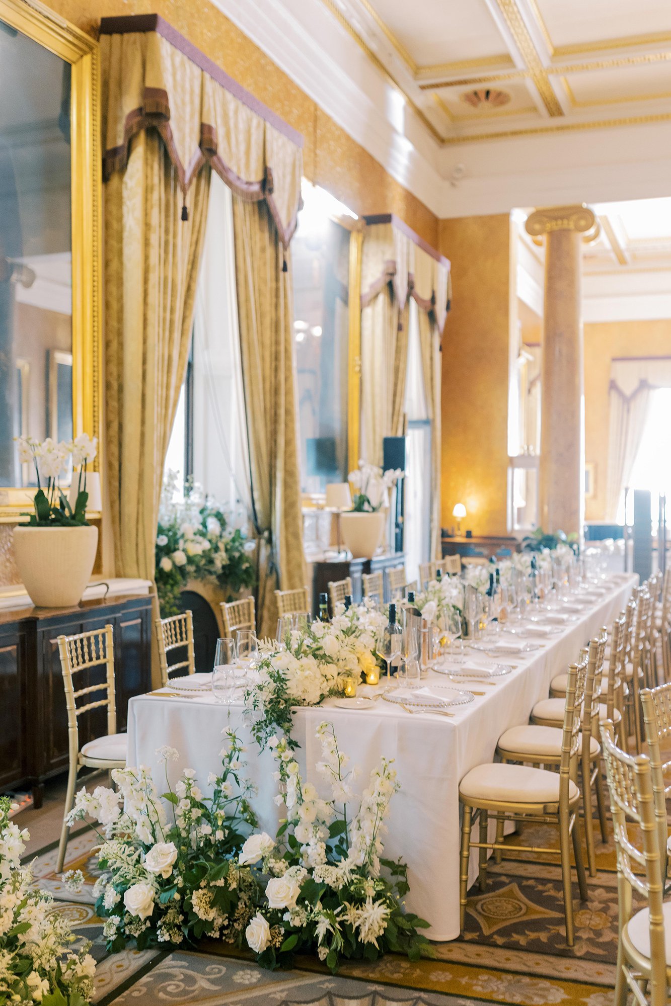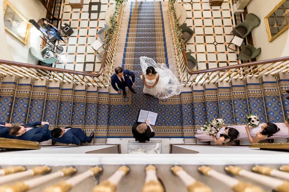 Exchange vows beneath the grand marble staircase, then move to the Nash Room for your wedding breakfast, where soft blue accents, high ceilings, and sparkling chandeliers create a refined, romantic atmosphere. In the warmer months, enjoy drinks and canapés in the private terrace and garden, capturing magical moments with your guests before continuing the celebration in the glamorous Champagne Bar for your after-party.